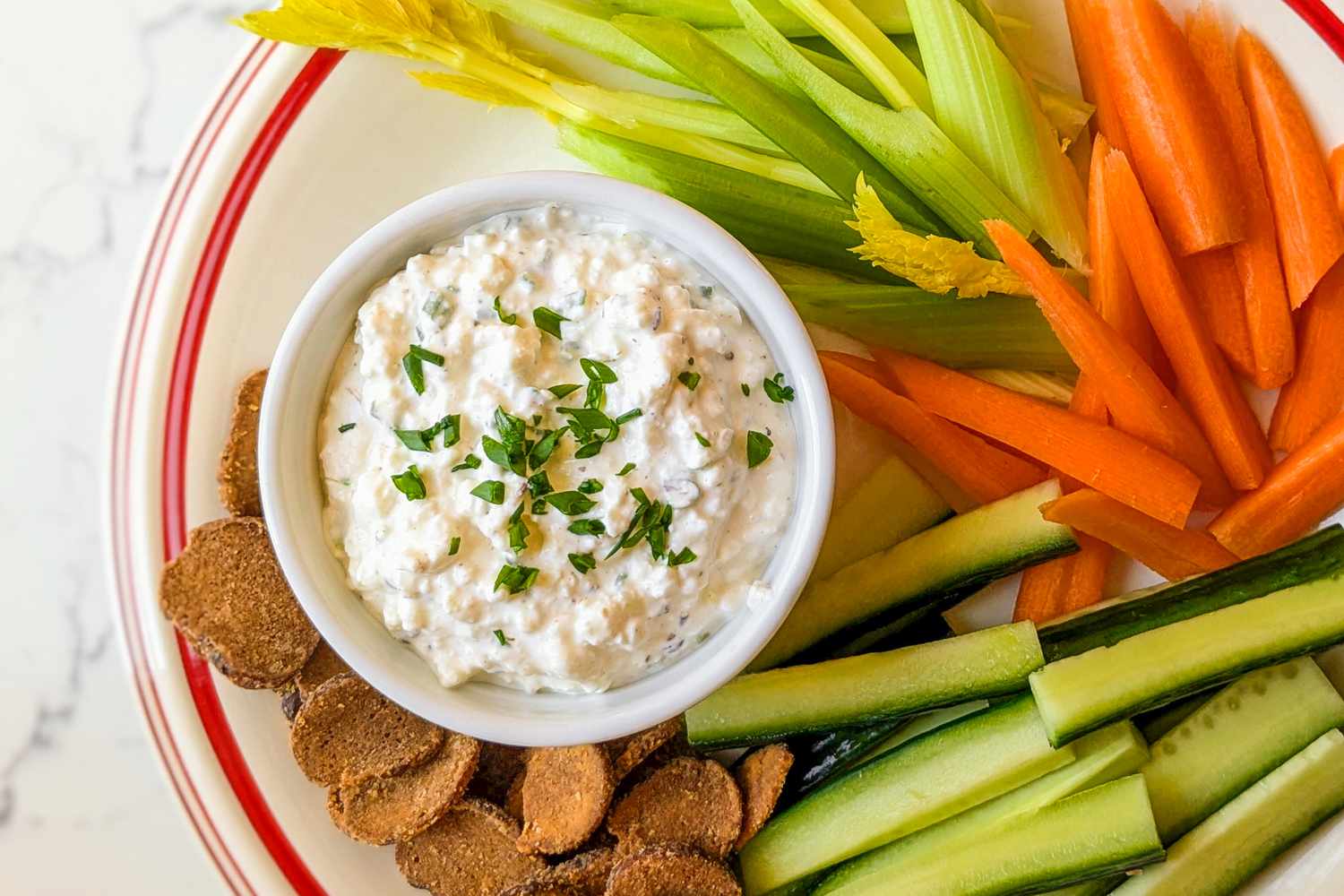 But my favorite way to serve spiced cottage cheese is the OG supper club way: with an artfully arranged platter of icy-cold vegetable sticks and pumpernickel rye chips. It brings back memories of the hours I’ve spent in kitschy supper clubs nestled in snowy woods where dinner was always a somewhat glamorous, hours-long event.