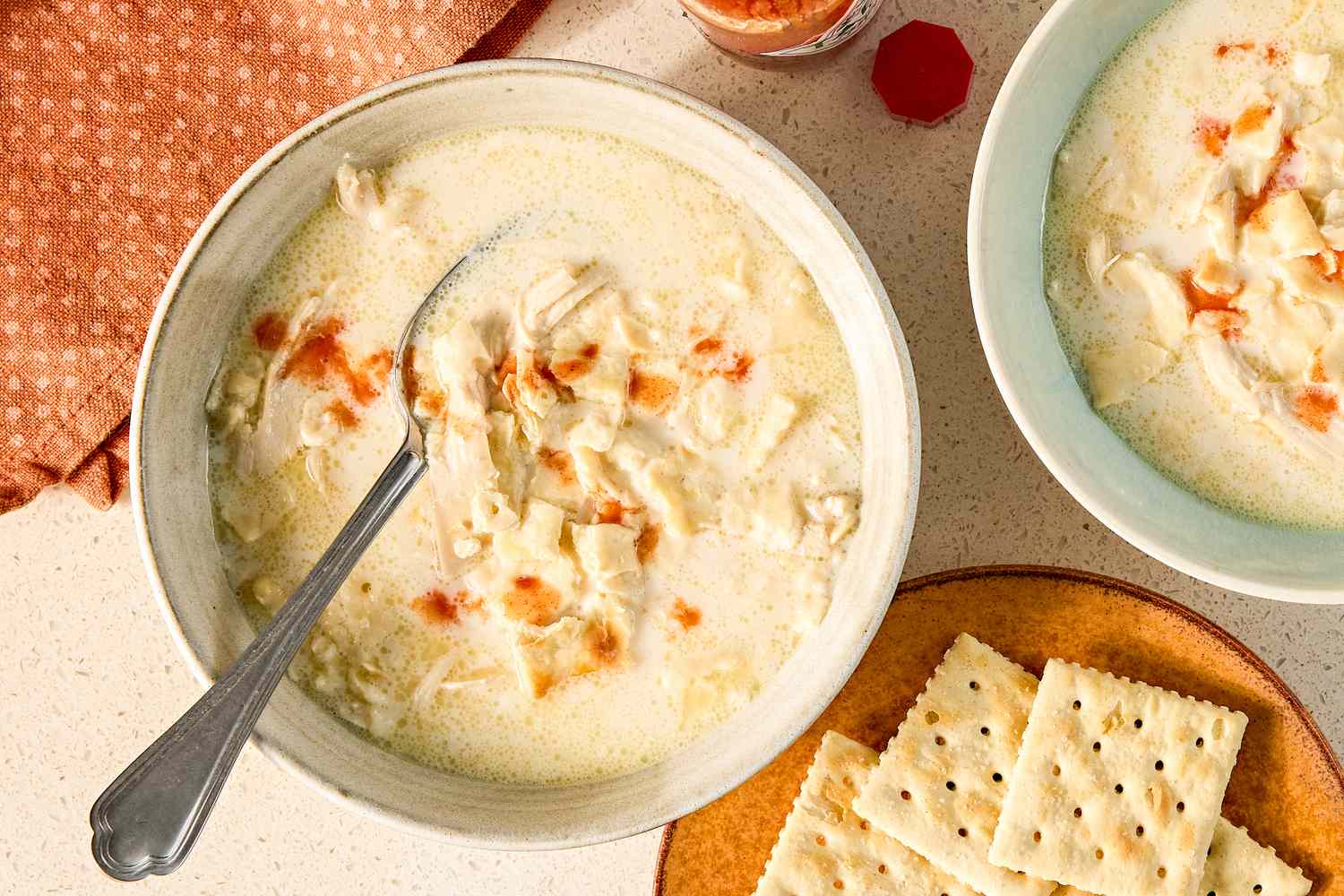 - Crushed saltine crackers thicken the soup and give it its unique texture and heartiness.
